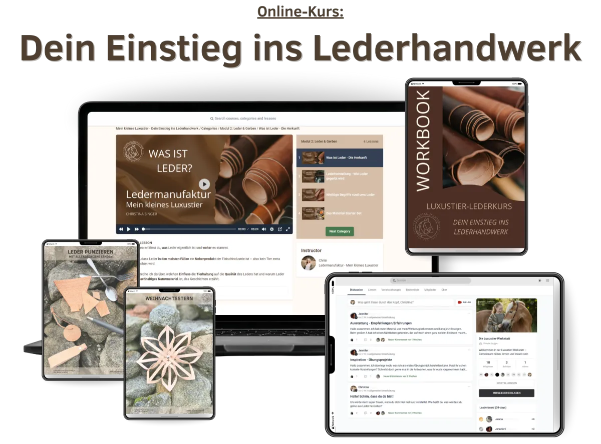 Sichere dir jetzt deinen Online-Kurs "Dein Einstieg ins Lederhandwerk" und erhalte sofortigen Zugang.
